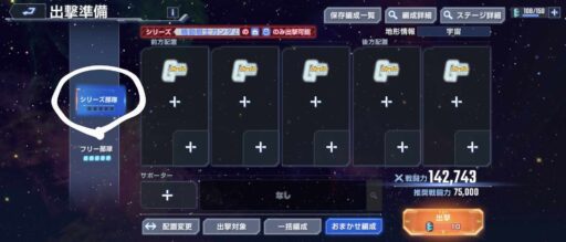 シリーズ部隊は編成をしなくても出撃できるので、編成するのが面倒臭い手持ちがいない人はフリー部隊のみで挑戦して大丈夫です