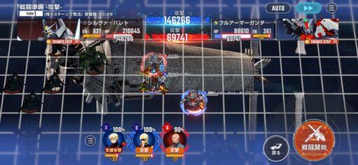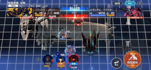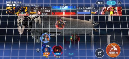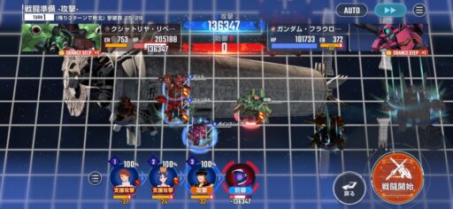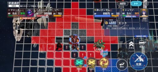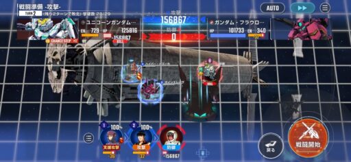 キャスバル専用ガンダムを画像位置に移動させてバンシィ・ノルンを攻撃