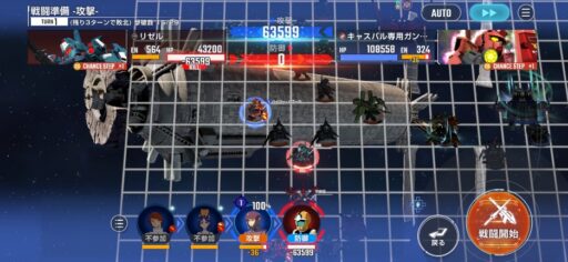キャスバル専用ガンダムを画像位置に移動させてリゼルを撃破