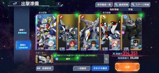 マスターガンダムやフェニックスで攻略した場合は編成を変えましょう