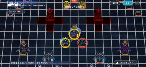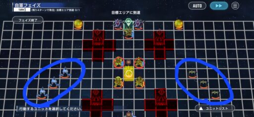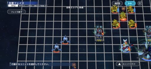 ゲルググを画像位置に配置します。この時に攻撃はしないです