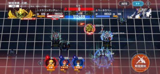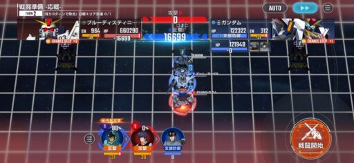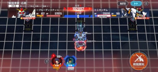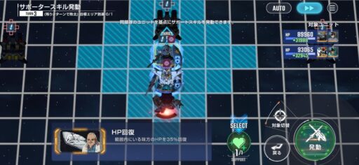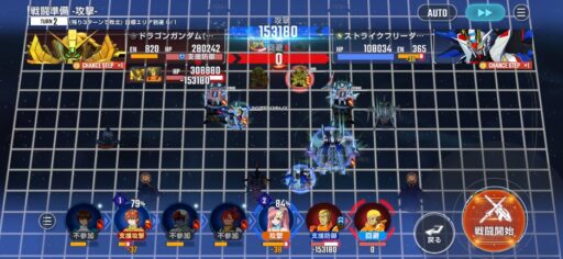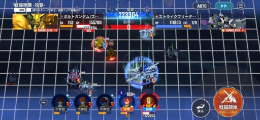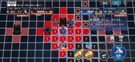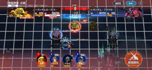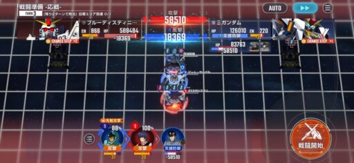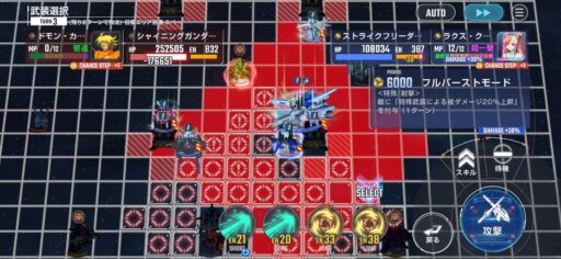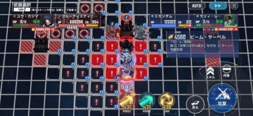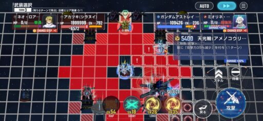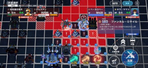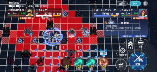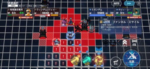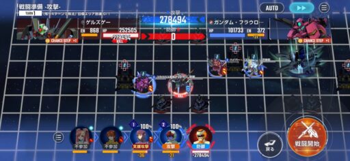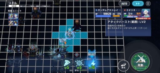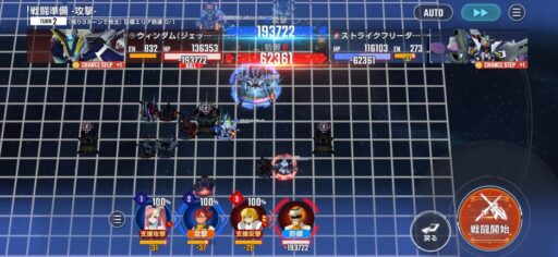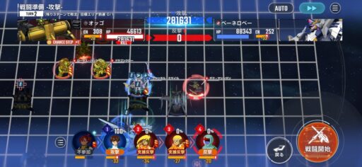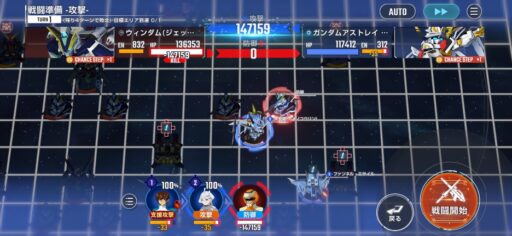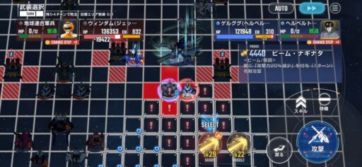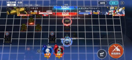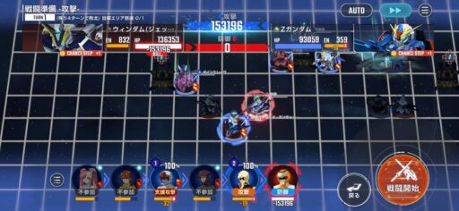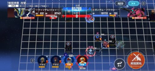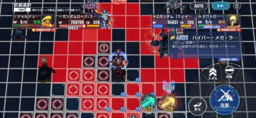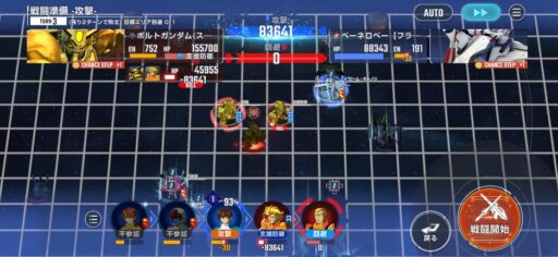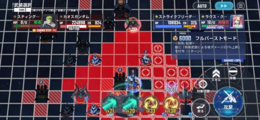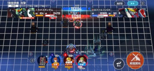 チャンスステップ後に攻撃アップマスに移動してカオスガンダムを撃破