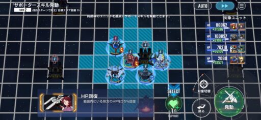 キャスバル専用ガンダムを中心に戦艦スキルのHP回復を発動