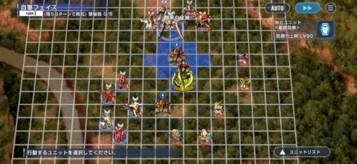 青い範囲が防御力アップ効果があるので、部隊を全て青い範囲内にいれましょう