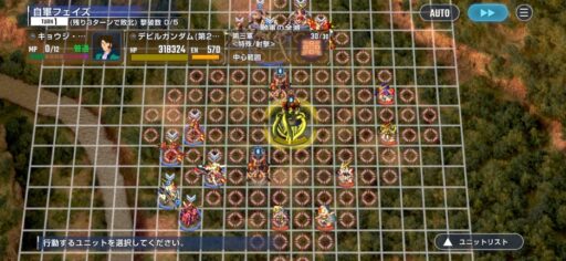 中央にいる第三軍の敵が広範囲のMAP兵器を撃ってくるので防御力アップ範囲に入って攻撃を受けましょう