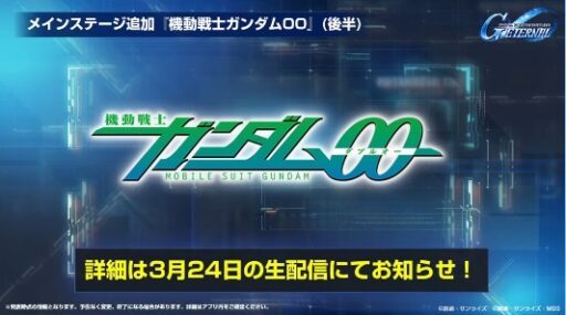 1stアニバーサリーにガンダム00が含まれると思われます。詳細は24日の公式生配信に発表されるそうです