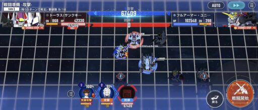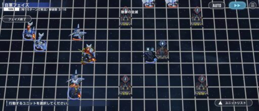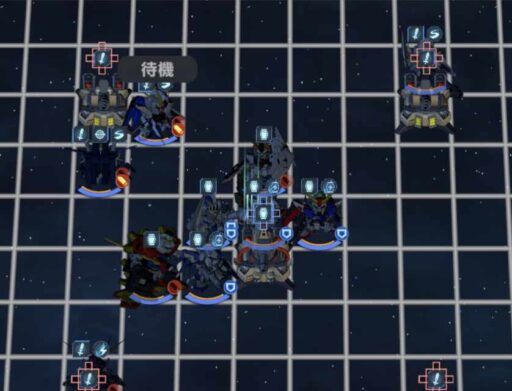 GXビットを倒したら画像の位置に各機体を配置して部隊1は終了