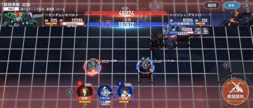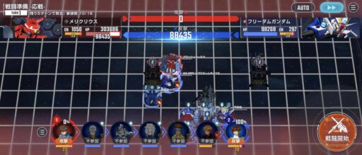 フルアーマーユニコーンガンダム、デスティニー、νガンダムを画像の位置で待機させる
