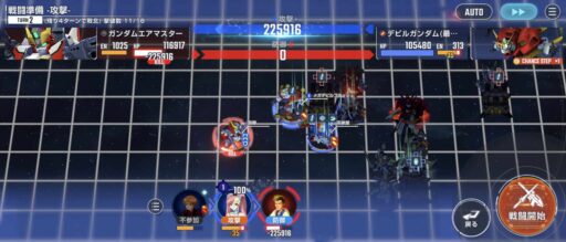 デビルガンダム最終形態を画像の攻撃力アップマスに移動後にエアマスターを撃破