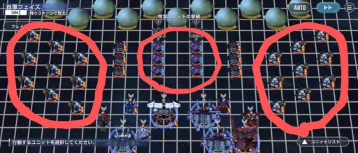 右側の敵処理をミスってしまったのでジャスティスミーティアが1機落とされてしまいます