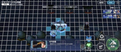 ジャスティスミーティアをチャンスステップを利用して画像の位置からMAP兵器を撃って支援防御の敵を撃破