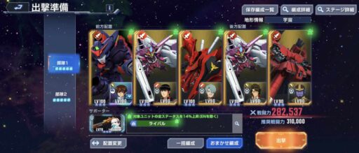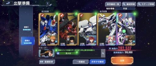 あえて開発機体と配布キャラを多くしてプレイしているだけなので、UR機体やURキャラを優先的に編成しよう