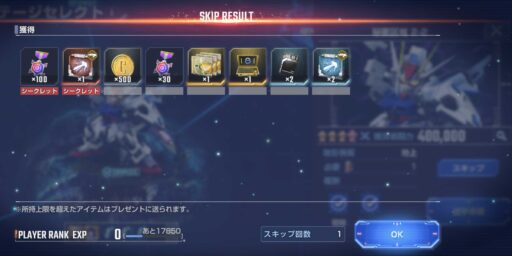 - スコア 120,000 武装強化パーツUR ×1